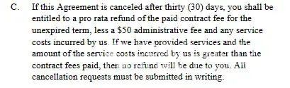 We have had terrible service from this company for the last 3 months. We were trying to get our air conditioning service fixed for a month and a half. They kept stringing us along and finally said that they would not cover any of the repair. We are wanting to cancel our account with them and I've already signed up with another home warranty company. Service Plus says we are obligated to keep paying until November because it's a year contract. We have paid month to month and we feel that they should just end our contract since we are not satisfied with the service. Here is the paragraph in the contract. We don't require any refund. We just want termination of this so called "service".
