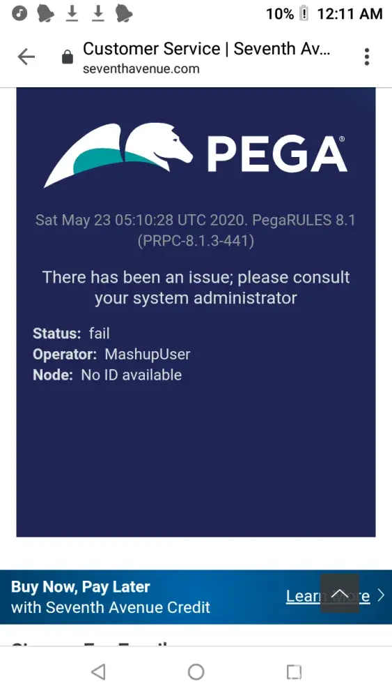 I went on seventh ave webite to apply forcredit and its not a real site I entered all my info and social security number so I looked up the company pega with screenshot below and thats what the company made to do