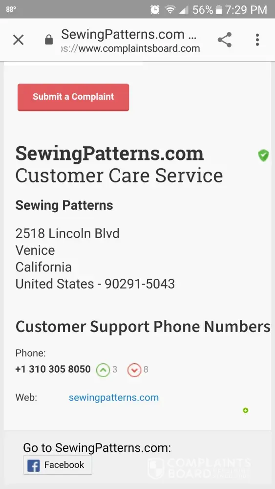 Read full complaintSewingPatterns.com complaints: history and resolution overview