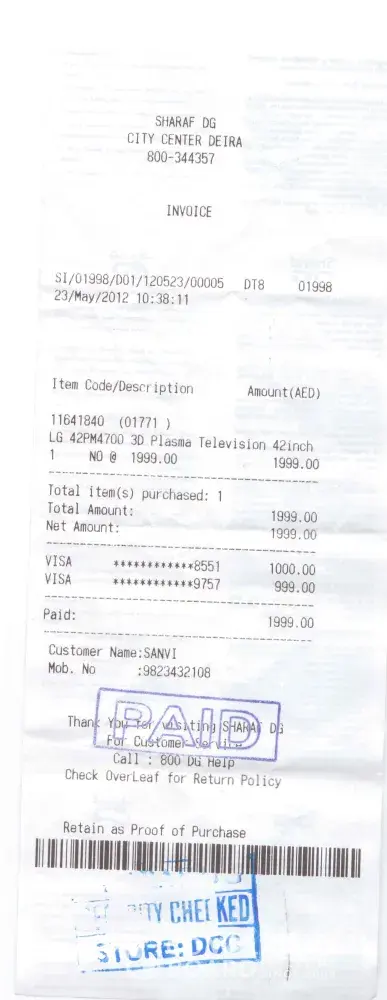 I had gone for visit in Dubai, and purchased 3D tv in Sharaf DG store, Dierra Dubai.