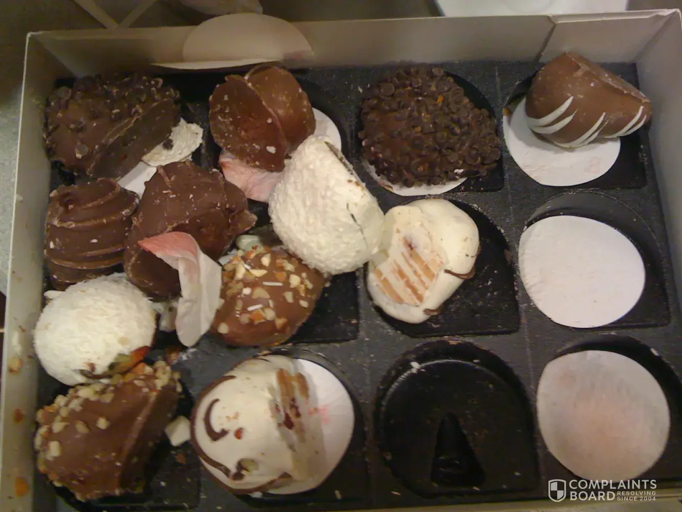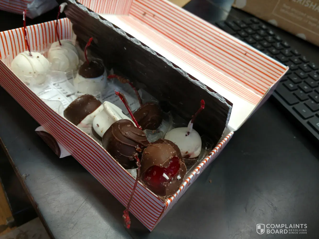 I am extremely unhappy with this company. I asked for the delivery date of my moms mothers day gift to be either May 9th or May 10th. She received her gift on May 13th in a soaking wet box and everything inside of it was ruined and there was mold growing on the strawberries.