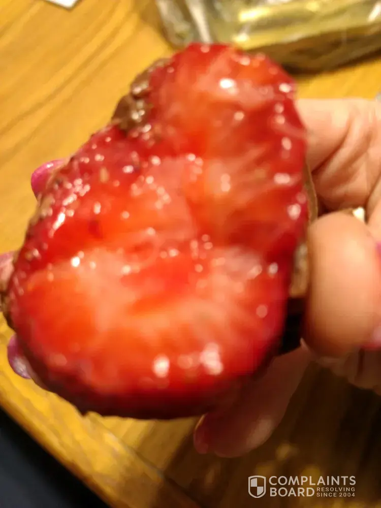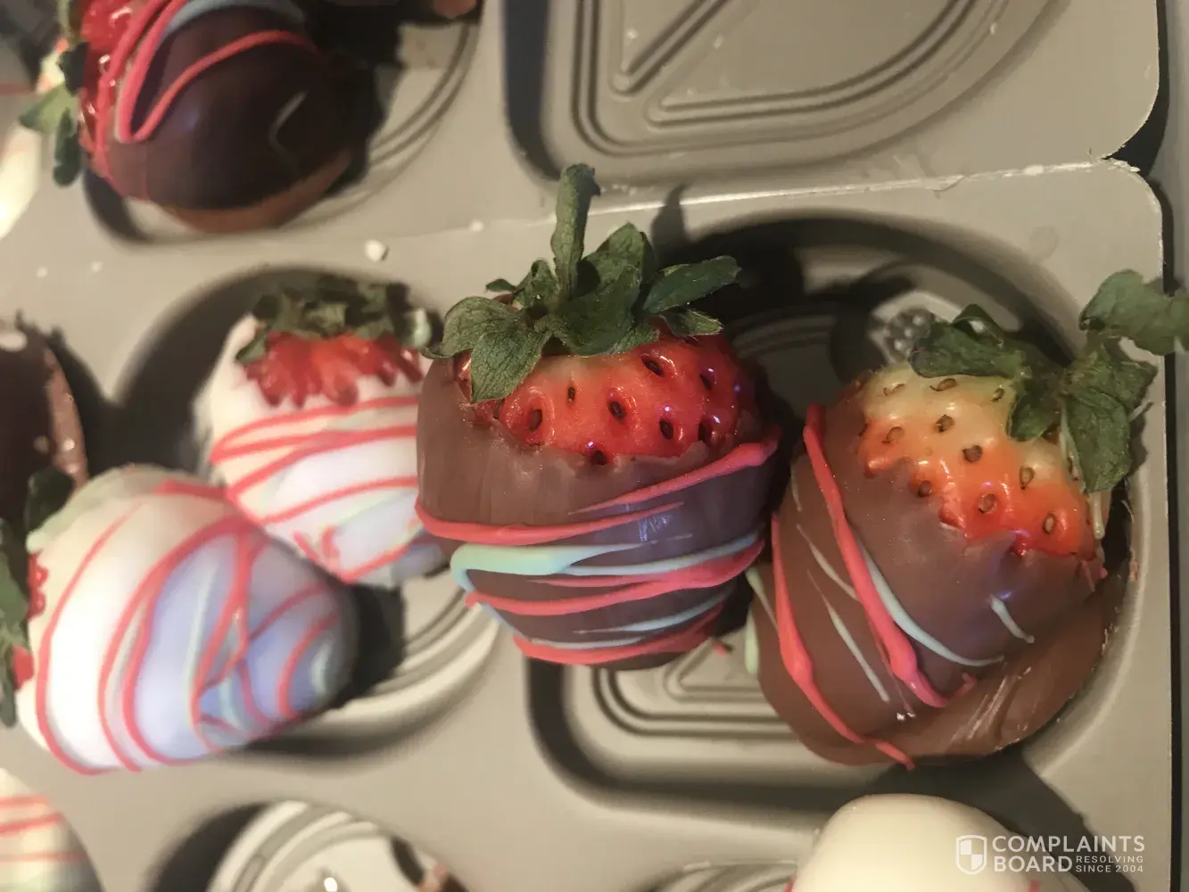 We receive chocolate covered strawberries each year from our kids. This year the strawberries were horrible. They were small not ripe, actually green and the chocolate taste horrible! So dissatisfied