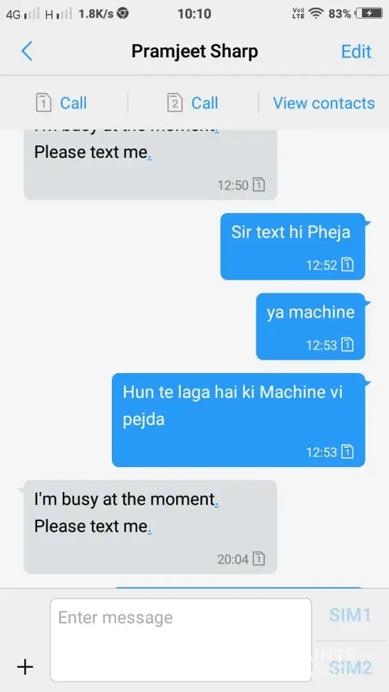 I'm busy moment please text me mayiny 21-08-2017 se continue phone or massage bhej raha hu per koi reply nahi mil raha