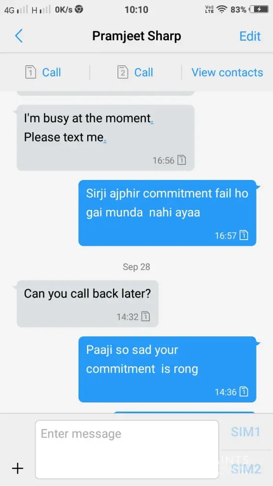pramjeet singh ji say batkaro per Pramjeet singh ji ko phone karo to na to phone uthaty hai or massage bhej dyinde
