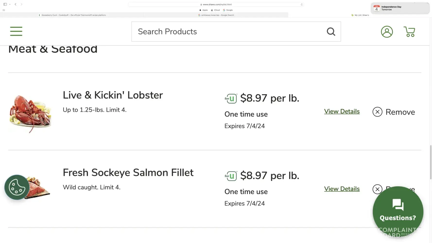 Between 4/8-4/10 I had three grocery orders and paid $515 to Shaws. I am dissatisfied with two producers. 1) I purchased diced nut squash, and it turned bad in two days. I shouldn’t have to be inconvenienced to go back to the store to return it. 2) Small scallops have a bad fishy smell and I couldn’t rinse them out after 10 times. It was still...