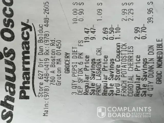Desired outcome: I want a refund and if I was to think about shopping Shaws ever again the problem needs to be corrected.