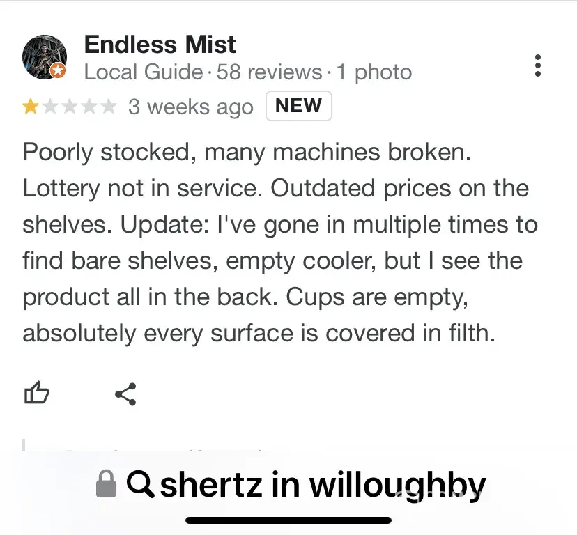 Good Day, I used to go frequently go to the Sheetz in Willoughby, Ohio off SOM Center rd. On Sunday, September 15, 2023 was the last straw for me not saying something. It is filthy inside and outside. The inside coffee refreshment area is always dirty, sticky, products spilled on counters. When you walk on the floors in that area you stick to the floor and...