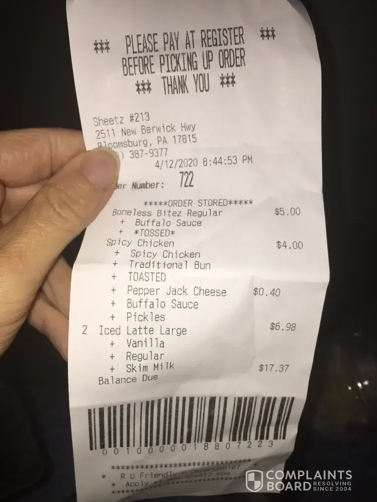 I was at the Sheetz in bloomsburg pa 4-12-20 I ordered 2 large iced vanilla lattes along with other food after paying I went to pick up my food and drinks when my order was called when I told the girl behind the counter that it was the frozen latte not the iced lattes that I ordered she stated "well if you really want I can make you the right ones but these are better cause there more expensive" seeming like it was a bother to her I just took the frozen drinks