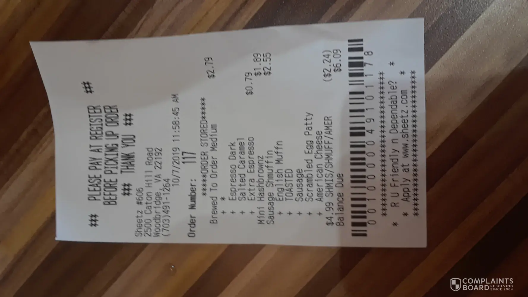Read full complaintcustomer