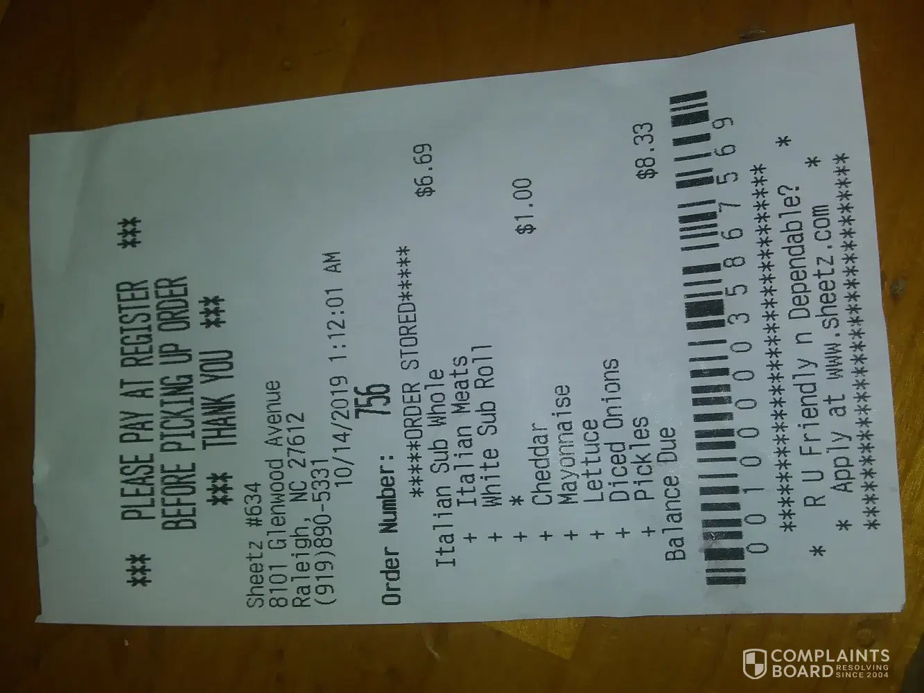 Me and my family go to sheetz frequently. Today I ordered lunch for me and my husband so I could go home for lunch and eat with him. I ordered through the app as I usually do, when I got home and opened what I thought was a premium club sub was nothing but turkey and cheese. I ate half of my lunch and my husband ate two bites of his, we both had our hearts set on a club sub. This does not happen with the sheetz that we go to, I understand it's lunch time. I ordered it 30 minutes prior to picking it up so they had ample time to make it correctly.