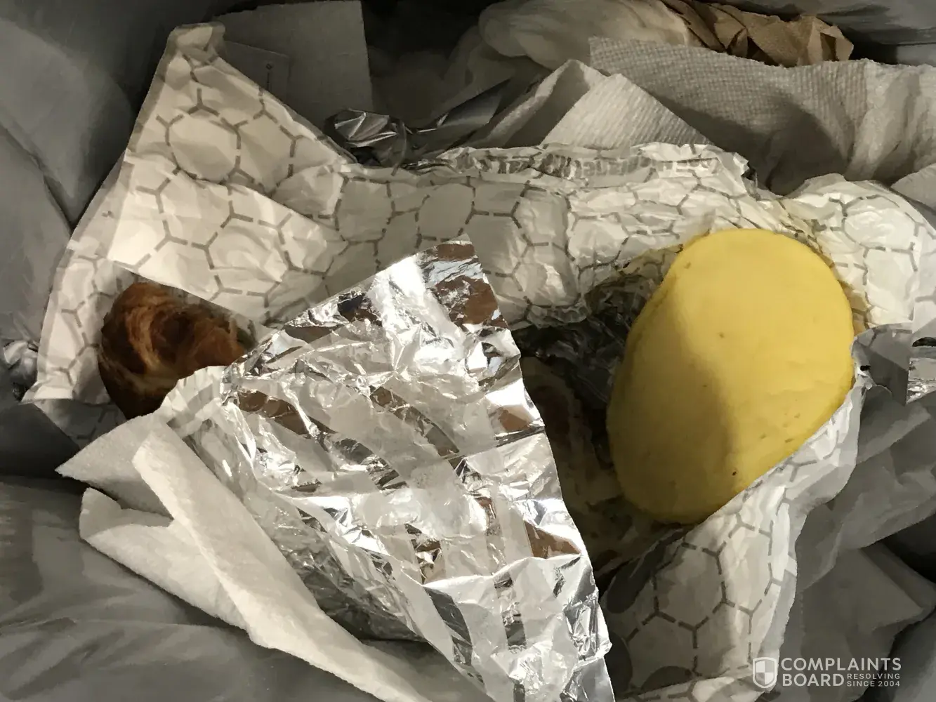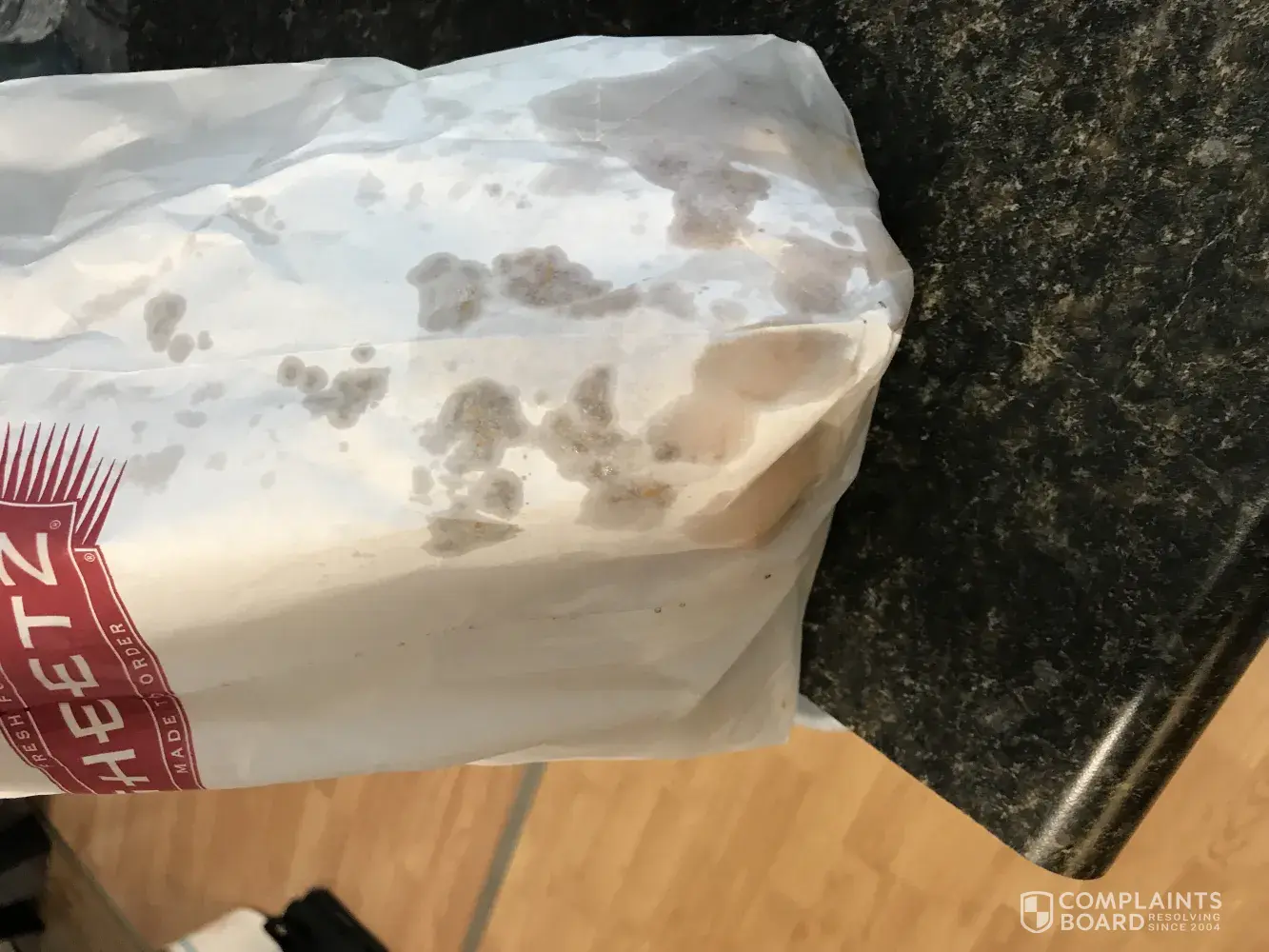 I order from the online app almost EVERYDAY. Not only did the GREASE from the tater tots STAIN my pants, the sandwich I order was completely WRONG and disgusting looking. I order a ham, egg, and cheese with bacon.. they put ONE piece of bacon, disgusting, rubbery cheese, AND SAUSAGE. I couldn't even eat. I'm so unbelievably mad, I may never order again. I included picture of the greasy bag, the disgusting sandwich, and the sandwich in the damn trash where it should've been to begin with. Get your old staff back. I'm sick of these people that have no idea what they are doing.