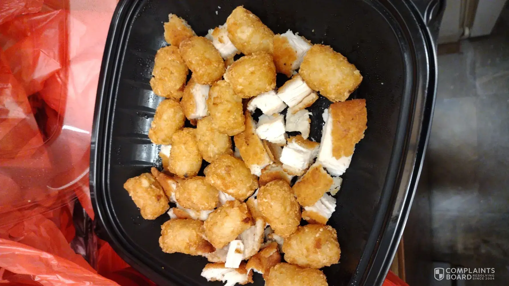 it’s 12/27/22 and i went and ordered some food , moterella sticks , 2 boom boom mac , chicken tossed with garlic , and once again the person making the food at this time , threw whole entire patty’s of chicken in the mac , and it’s disappointing, my order number is 853 , i’ve took pictures of everything i’m gonna say something next time i go there , becuz it’s kinda ridiculous that this has happened about 3 times and it’s the same employee that does it every time , every time , i wasn’t able to catch his name i’m not even sure if he had a name tag , he doesn’t even say anything when he hands me my food witch i think is kinda rude a little bit when it comes to service .