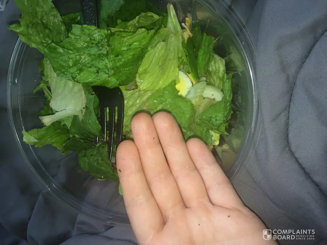 When I opened the container my salad came in, instantly you could smell the salad mix was going bad. I proceeded to put the nuts and berries in the salad then mixed it. Noticed the salad is indeed bad. I was wiping black dirt off the salad mix. Absolutely disgusting. I did not eat it. I am usually pleased with Sheetz food but today was a very big disappointment.