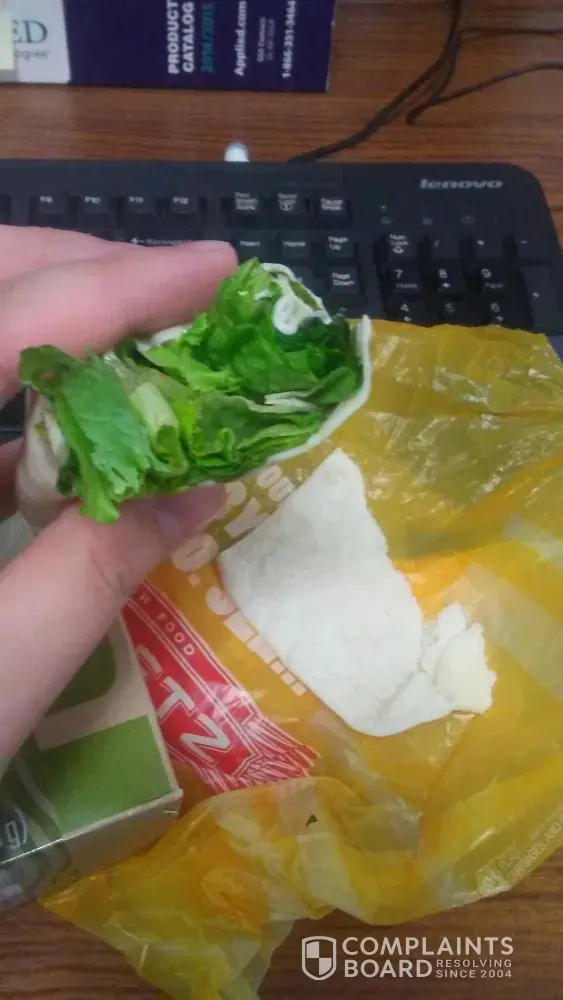 I stopped into Sheetz today to grab some lunch and I picked up a Made-To-Go wrap. It SAYS Bistro Chicken Salad Wrap but what I actually received was a flour tortilla with lettuce in it. There was hardly any chicken salad at all. In fact, the wrap was primarily made up of wrap and lettuce ONLY. Not to mention the lettuce was old and wilted.