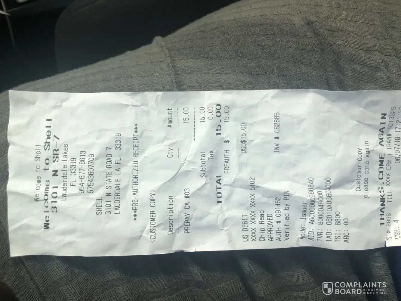 I recently stopped at shell station #53286480081 at i-95 & us264