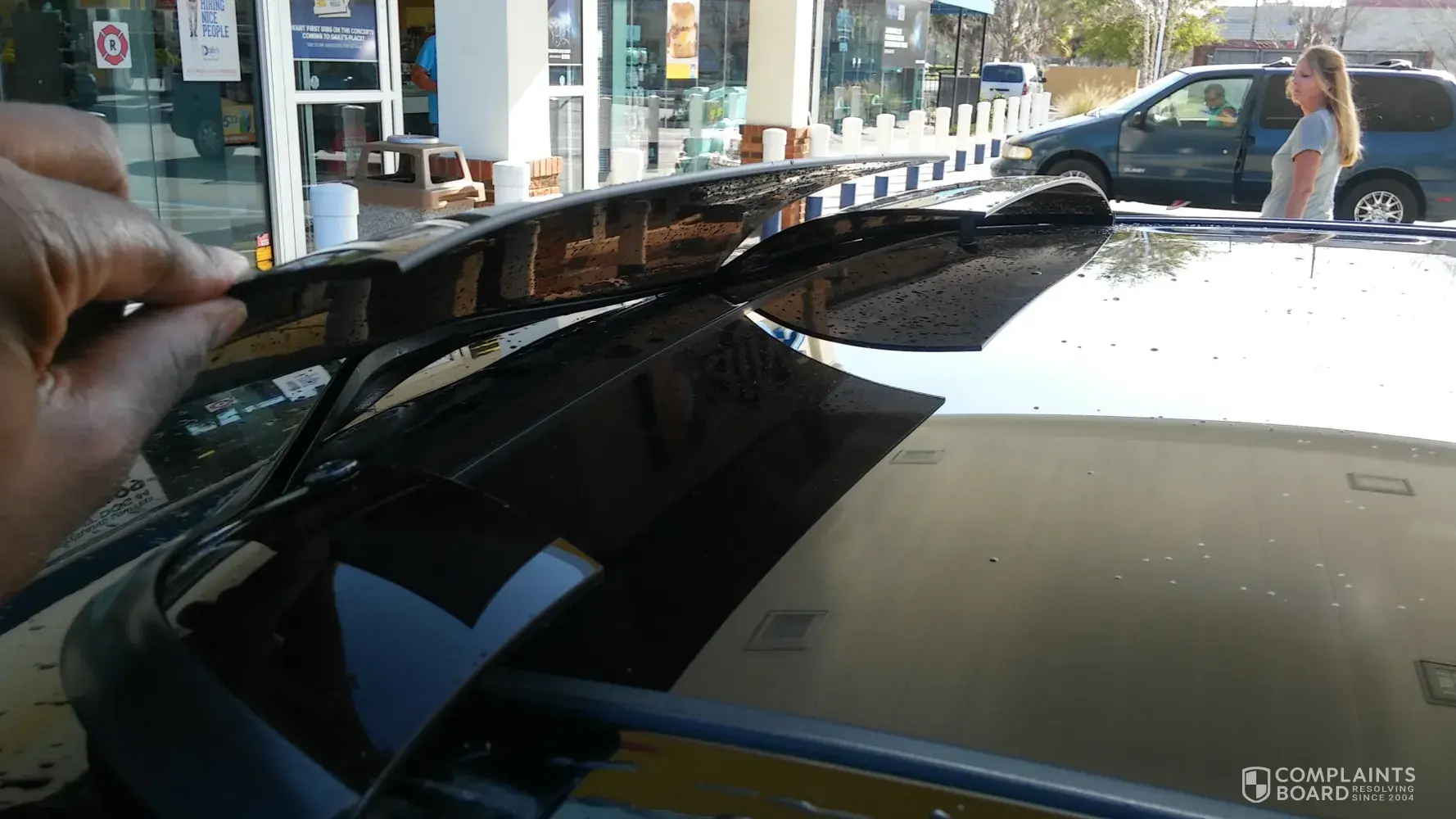 I attempted to visit a Shell Gas Station on the Southside of Jacksonville Florida. I entered the car wash to get my Hyundai Genesis cleaned. I normally don't use the machine operated car washes but my car was covered with pollen. I noticed out my rear view mirror the machine was missing most of my car. I looked out the front through the windshield and noticed the dryer arm. It said proceed slowly and as I atempted going under the arm I heard a loud crack. I pulled my car to the side and saw dammage to my sunroof. My car was still covered with soap from the car wash. I proceeded to park and go inside to report what had happened. Several custoners going in and out the store saw my car with the soap & damage. One customer walked over and gave his info to me. He went on to say he witnessed some people working on the machine the day prior. I went to a Manager to file a property damage report. I was given a copy and advised it would be turned in to Shell Corporate Office. It has been 5 days now and not a word from Shell or anyone.