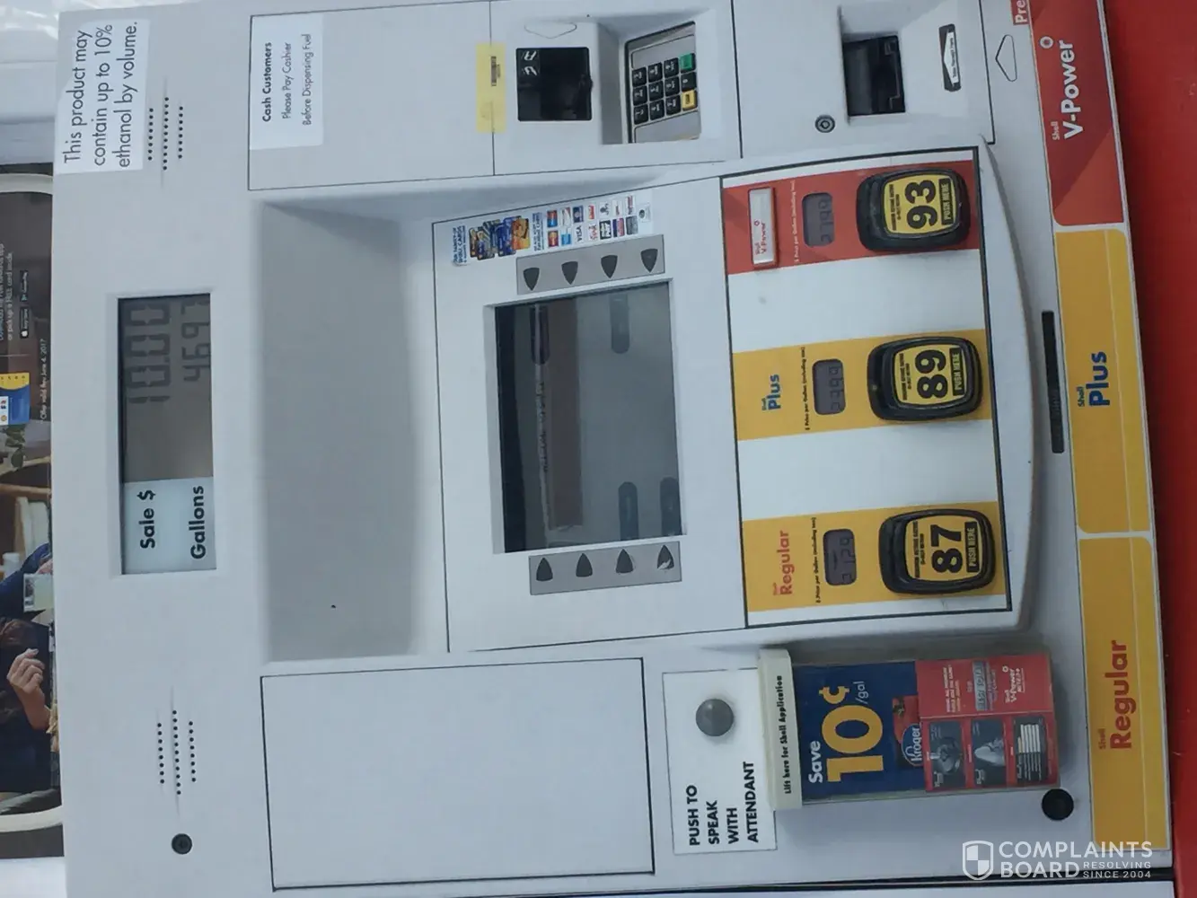 Today around 3:45 I went to pump some gas at my nearest shell. When I got there I tried to use my fuel rewards card and the pump froze. So I went inside and the lady said that all her pumps went down and it was taking a minute to come up. After a few minutes they came back up. I told her I wanted $10 on pump 8. She put it in, and I told her I was using my fuel rewards first. I swiped it and it said I had 0.03 per gallon. So I paid my money and went back outside. I began to pump my gas an noticed it never took my 0.03 off. So I was paying full price. I proceeded back in and told her it never took it off. She told me well I don't know why I didn't maybe because when the pumps went down it caused a communication error and there's nothing I can do. So afterwards I left. But that really upsets me because when I swiped my card it was supposed to come off.