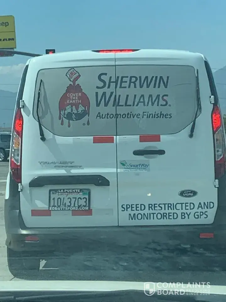 Hey sherwinwilliams this worker car of yours almost hit us as we were getting over into the exit lane at Mill Street in San Bernardino around 3:30pm on June 10, 2022, where the 215 and the 10 Merge in San Bernardino. They illegally passed on the shoulder about three cars behind us and almost hit us. My daughter let out a scream as they were very close to us, and trying to get into our lane from the shoulder, and I tried to swerve but there were cars next to us so I couldn't move much. Thankfully no one got hurt this time, but this driver is very irresponsible and a very bad driver.