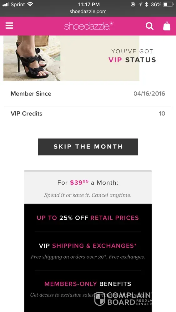 what a scam. over $900.00 for two pairs of cheap sandels. do not subscribe. when they finally offer you the option of skipping a month you still get billed. cannot contact them on the internet and phone service is poor.