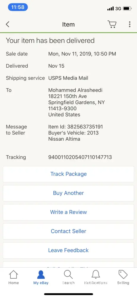 I ordered two items from ebay and they were delivered on 14 & 15th of November, but yet not received in my account: