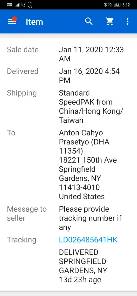 I have one package delivered to shopandship NY 13 days ago (tracking number LD026485641HK). From ebay tracking manifest said it was delivered on January 16, 2020. From S&S I didnot and never see any tracking information about that shipment. Please advise.
