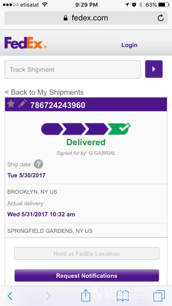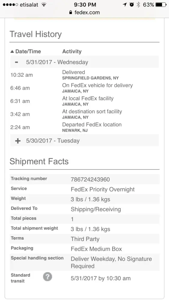 I ordered online coffee which was delivered by fedex [protected] to my shop and ship address.