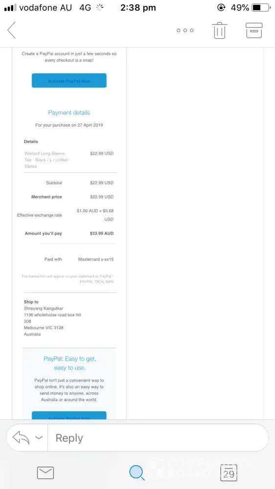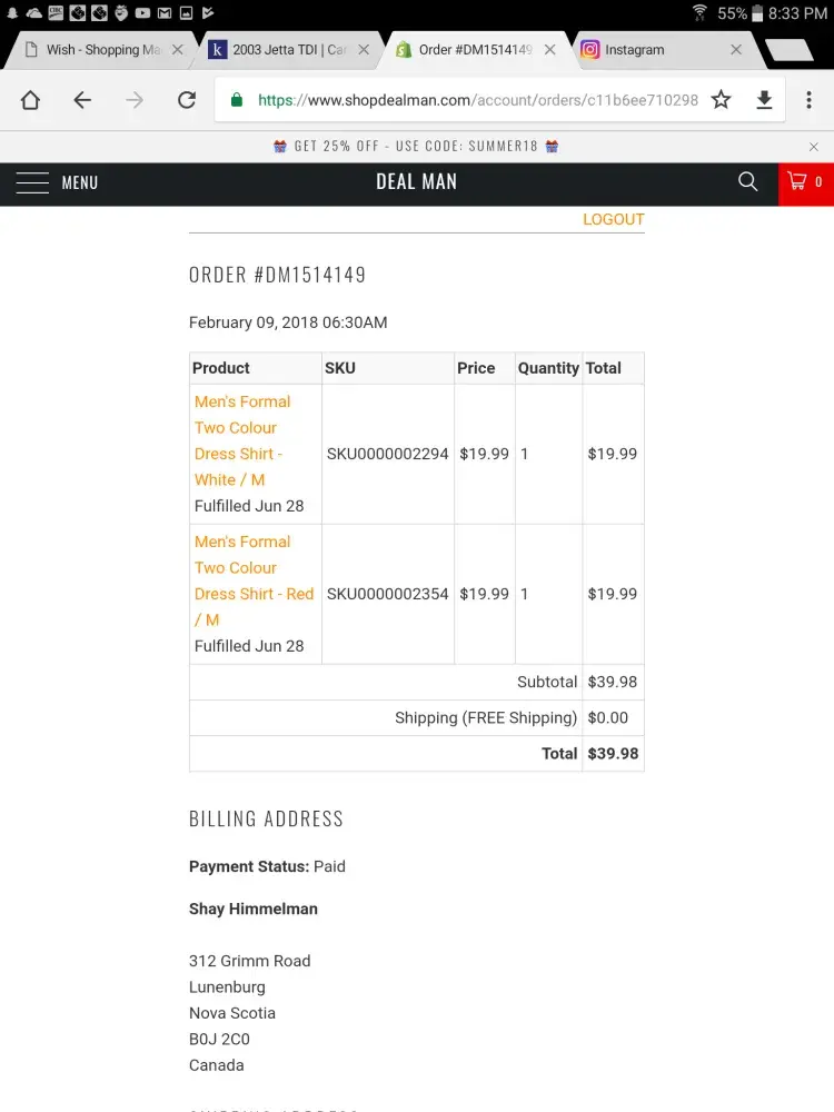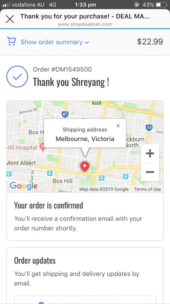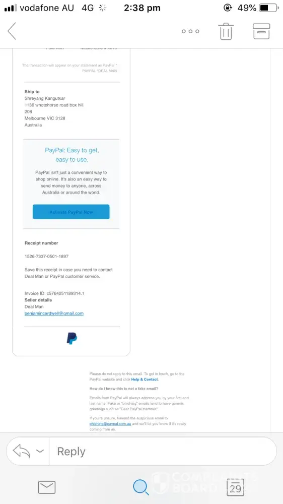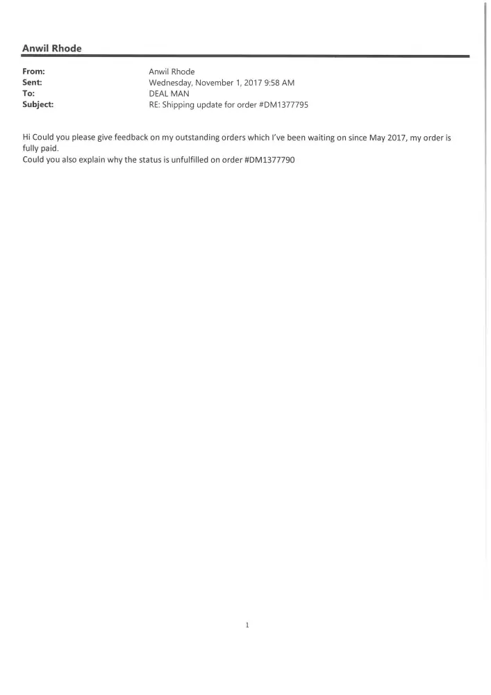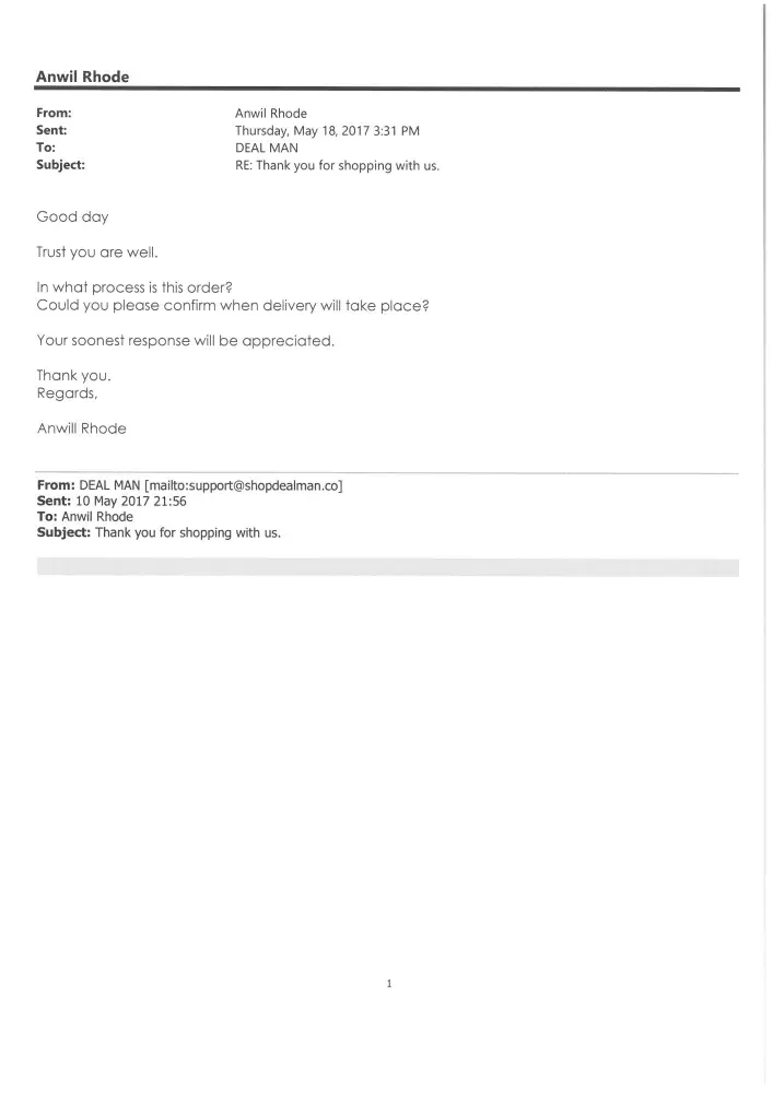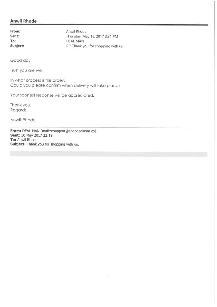 here's the email I receive from [protected]@shopdealman.co on the 17 May 2018