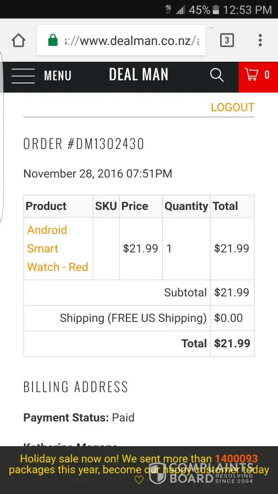 Thank you for ordering from DEAL MAN!