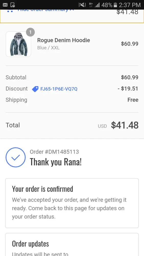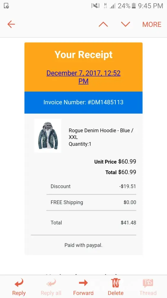 I had ordered (#DM1486008) a blazer from the site on 09 Dec 2017 but have not yet received any status from the vendor. I have tried to contact the personnel through the mail ([protected]@shopdealman.co) but there is no response from them. I have paid the amount in advance. Requesting you to kindly send my order at the earliest.