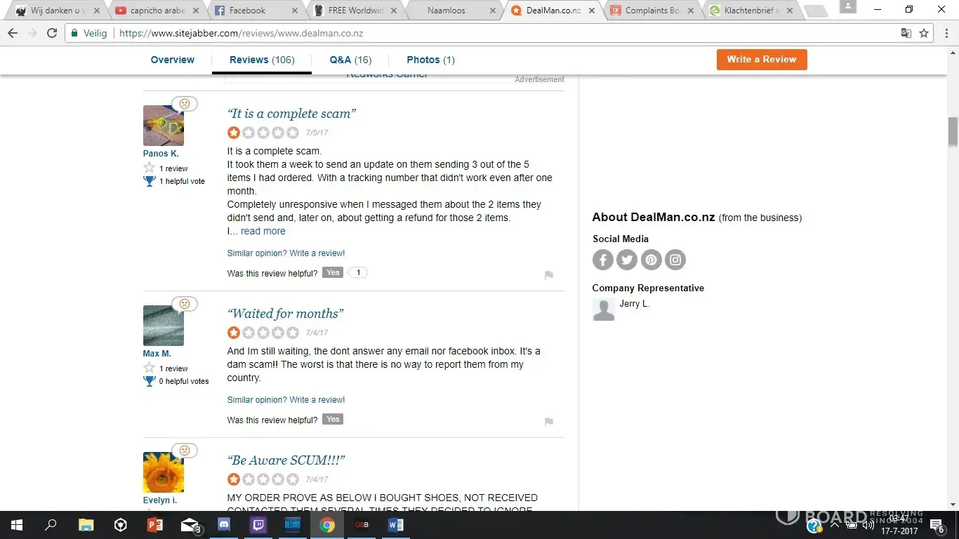 I placed an order with Dealman for a jacket, and paid on 14 April 2017 - order #DM1368492. To date I have not received it. The tracking number supplied by Dealman does not exist, and is from China.