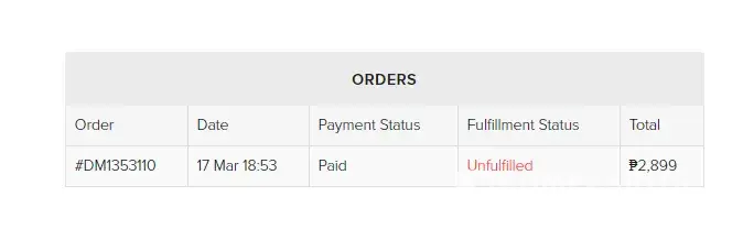 Fulfillment Status: Unfulfilled