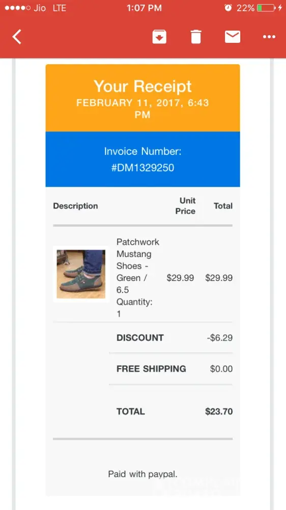 Hi, i have booked a pair of shoe on 11 feb, 17 with invoice number #DM1329250 but 20 days got over still dnt get any information about the courier i mailed also but i dnt get any reply do the needful asas i dnt know whether this is fake website this the first time facing such trouble before also i odered few items from international compay they provided exact info but the deal man site i am not getting any response
