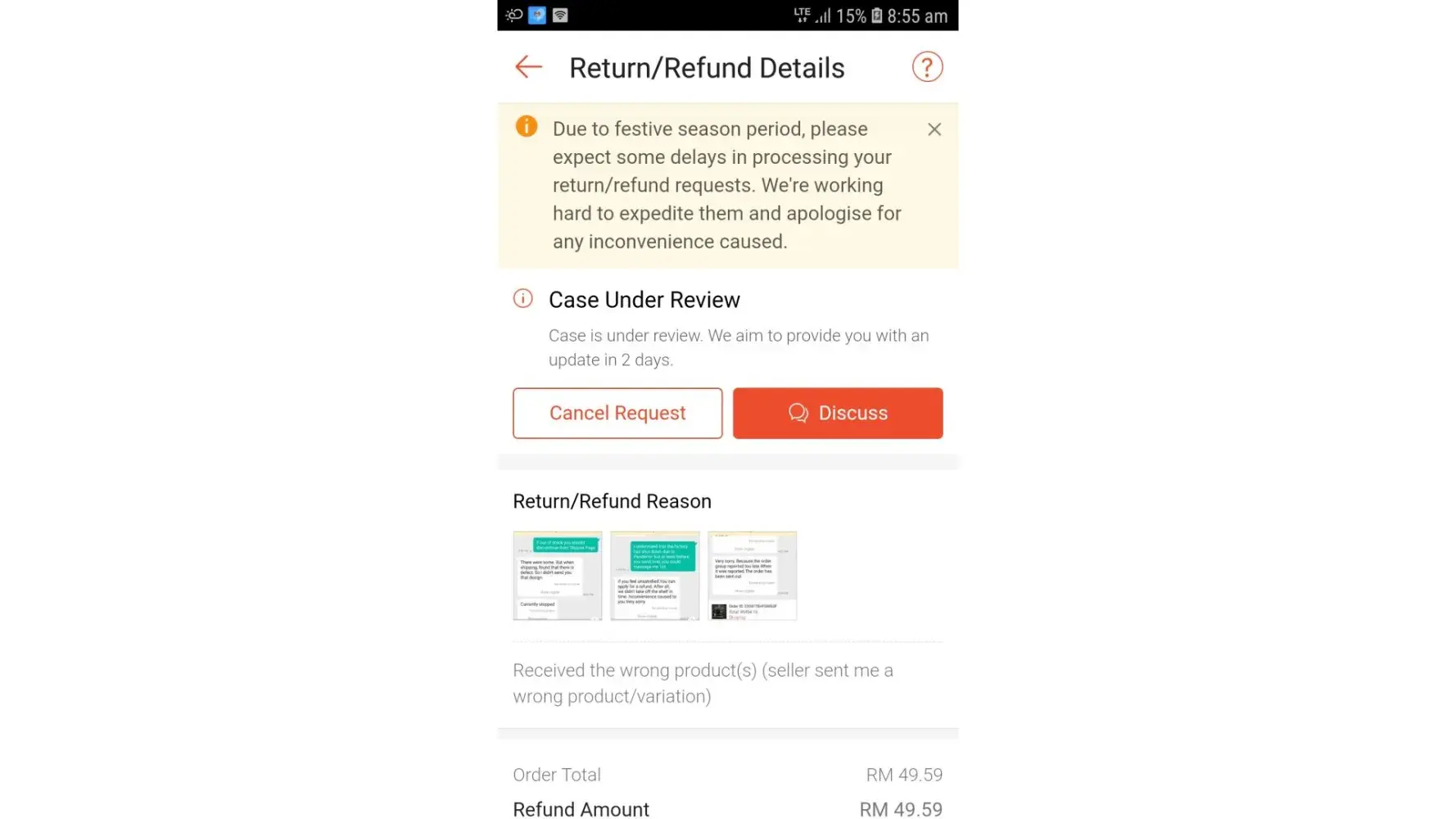Shopee malaysia is a scam company. If you receive wrong or damaged products, shopee will not honor your claim and cancel your request.