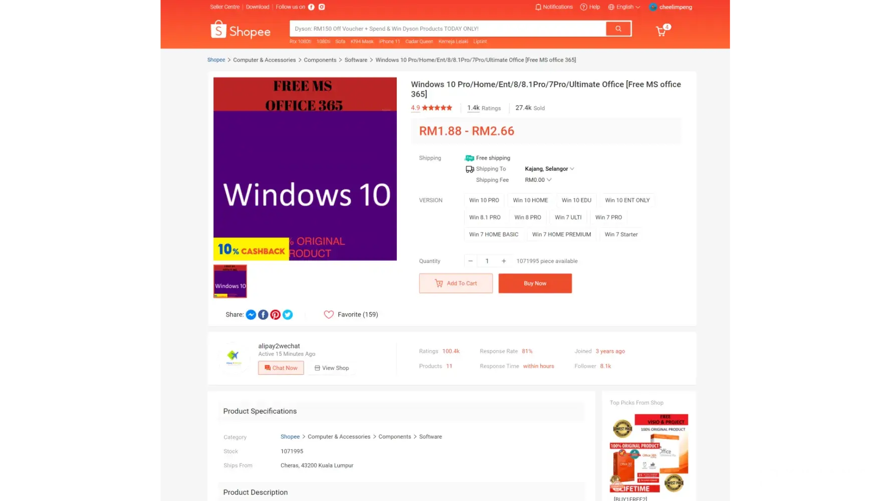 Please note that seller with id name alipay2wechat is selling counterfeit microsoft office software with so called genuine title, openly in your good platform.