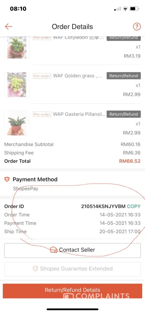 Placed an order for the plants on 14 May with expected date to deliver on 20 May. The plants were wrapped in newspaper, boxed and shipped by JnT on 25 May. I received the plants on 30 May. LO and behold, plants received in bad condition. Suffocated due to prolonged encapsulation. Shopee was made aware twice abt this since I have not rec'vd the goods. Kept telling me to liaise with seller which I have. Seller was super cooperative. But JnT delayed the shipment. Shopee then informed me that I have to bear the entire cost and no refunds bcos items are deem perishable. Understood the perishable part but I'm dumbfounded by Shopee response as it pointing solely to me and I have to bear the stupid cost because of the late delivery. What the [censored] is going on here Shopee?!