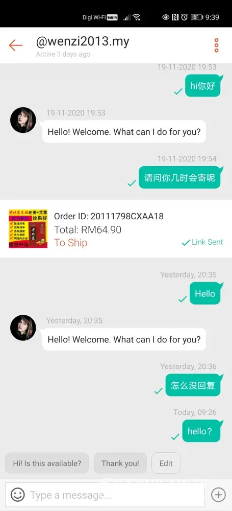 I brought the item with this seller on 17th Nov then no response no ship item then on 19th again I contact seller again no respond... Thus I make an cancellation since is not ship out and no response.. Cause I dun wan keep extend the guarantee by shoppee...