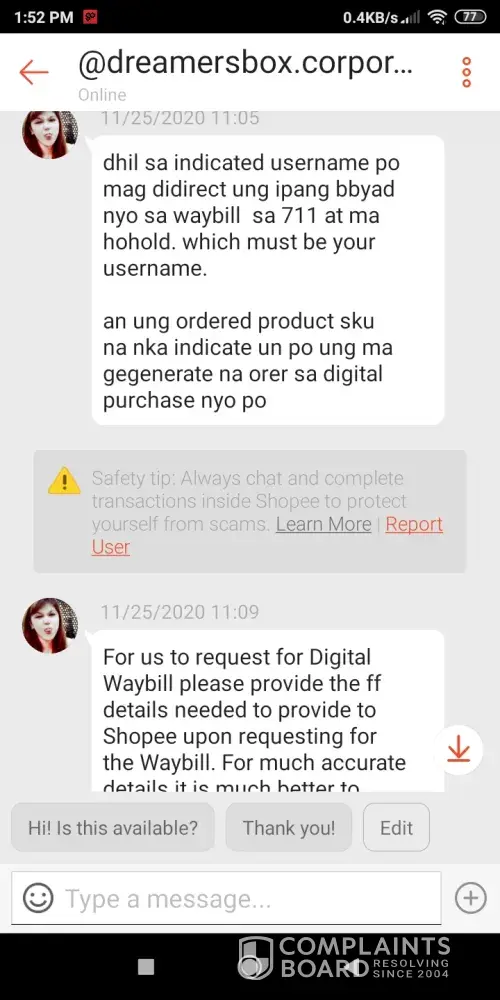 From Nov 26th and still ongoing I have asking for Shopee.ph to validate an order and account number but the escalation team that was assigned to my case never ever contacted me and give the pertinent info i needed for Gcash to reverse the payment for the grace period they had in place. because of their lapse transaction completed thus money got transferred to scammer personal account.