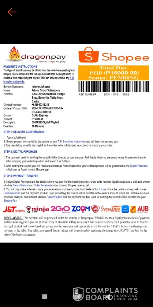 I ordered on shopee dated Nov 15, item from China. The item arrived in philippines on Nov 23, on the following day Nov 24 when I check the status it says item is on the way to deliver by the courier at 1pm. Then I waited all day for the courier to came. Then at 7pm to my surprise when I check the status of my delivery there is saying that parcel will return to the sorting hub because it was rejected by the user. I immediately contacted shopee agent to report what happened. Why the driver reported like that. Then agent told me they will do an action and wait for the item it will be delivered within 24hrs. Then the following day, Nov 25 around 8pm no courier came. I contacted again shopee and reported it again, then shopee agent assured me that my parcel will be delivered the following day so stop worrying. And then today, when I checked the status it was returning to the seller! I was like what the heck, come on shopee! 2 consecutive days I've been reporting this matter and then nothing happened? I contacted agent again and rely everything again and again then agent told me sorry because its already returned to seller, all they can do is to file a report against this driver. Oh really? Just now agent told me they will file a report.. Wow! Pls somebody help me to finally give this driver his award for being beast!