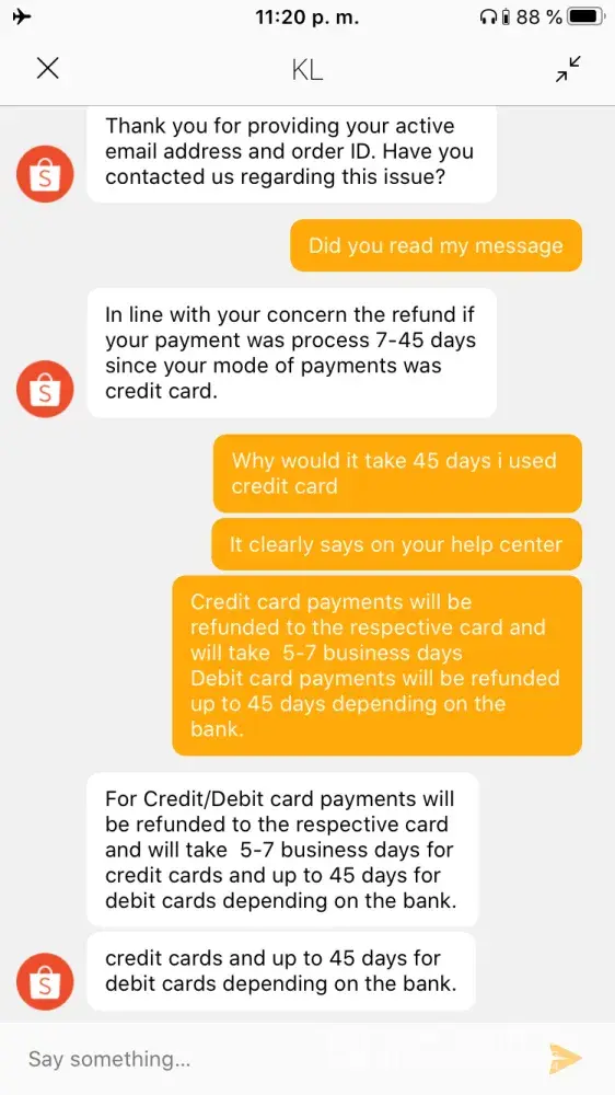 But the response I got was annoying. She accused me of reversing their policy. I'm attaching screenshots of our conversation here. I should also mention that I didn't get empathy at all and yes we weren't able to address my main concern which was the delay on my refund.