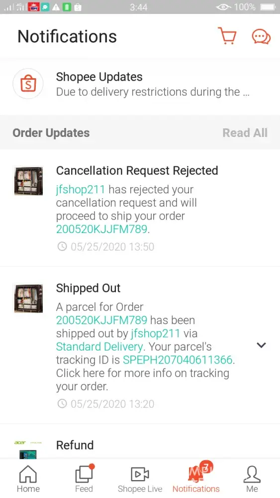 I recieved notifications about my cancellation request, the seller rejected my cancellation today, 1:50pm in exact. And my cancelled order already shipped out at 1:20pm, the seller shipped out first my item and rejected my cancellation 30mins after! What the hell is going on? That seller is insane. The seller never noticed me that it will still be shipped out, unlike other sellers, which they take some photos before they ship out. But not this seller I encountered.