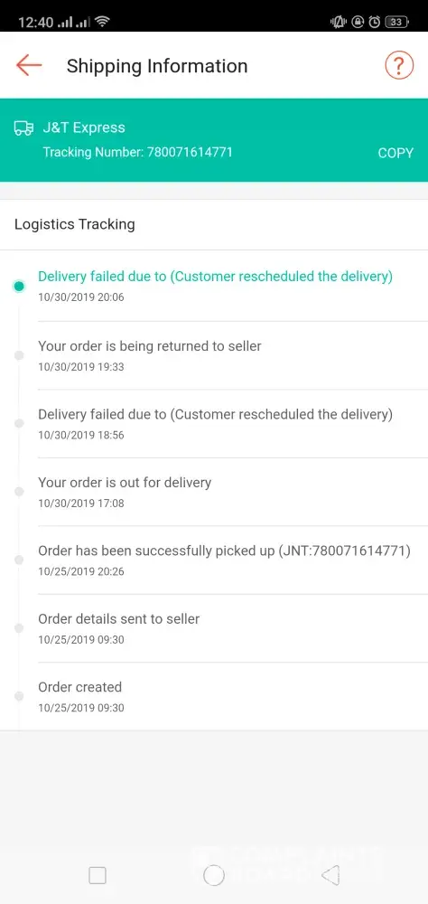 I placed an order last 10/25 at 9.30, J&T picked up the order same day at 20.26.. from that day I am checking the order status time by time to make sure that I am updated but days passed by there's no update, no call from the courier. Then when I checked today it was already RTS return to seller for such reason that customer reschedule the delivery. I DID NOT RESCHEDULE THE DELIVERY BECAUSE IM WAITING FOR IT! AND HOW CAN I DO THAT IF IM NOT RECEIVING ANY CALL FROM THE COURIER! Do something about this. I used my coins for this order then they just cancel it. FIX IT ASAP! DELIVER THE ITEM OR REFUND BACK MY COINS!
