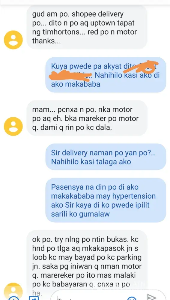 Naka ilang chat na ako sa customer service, unang chat ay regarding sa wrong delivery na pinadala ng seller, kinausap ko si rider about sa cancellation at nag agree naman sya at umalis, i chat the seller na cancel nlng order ko pero na tag na sa system nila na na received ko na daw yung items, idineliver ulit kinabukasan kaya na received yung item ng sister in law ko at nabayaran na, kaya ni return ko tuloy yung item kay seller, putik yung rider, alam na nga na cancel idineliver pa ulit, yung pangalawa naman ay shoppe express ulit at wala daw tao sa bahay, ni hindi man lang ako tinext dahil nasa hipag ko na yung pambayad at inaantay na din sya, kulang sa coordination, 1 text lang hindi pa magawa, abala talaga, hanggang ngayon wala pa ring update sa delivery, sabi ni cs wait 2 to 3 days ulit...