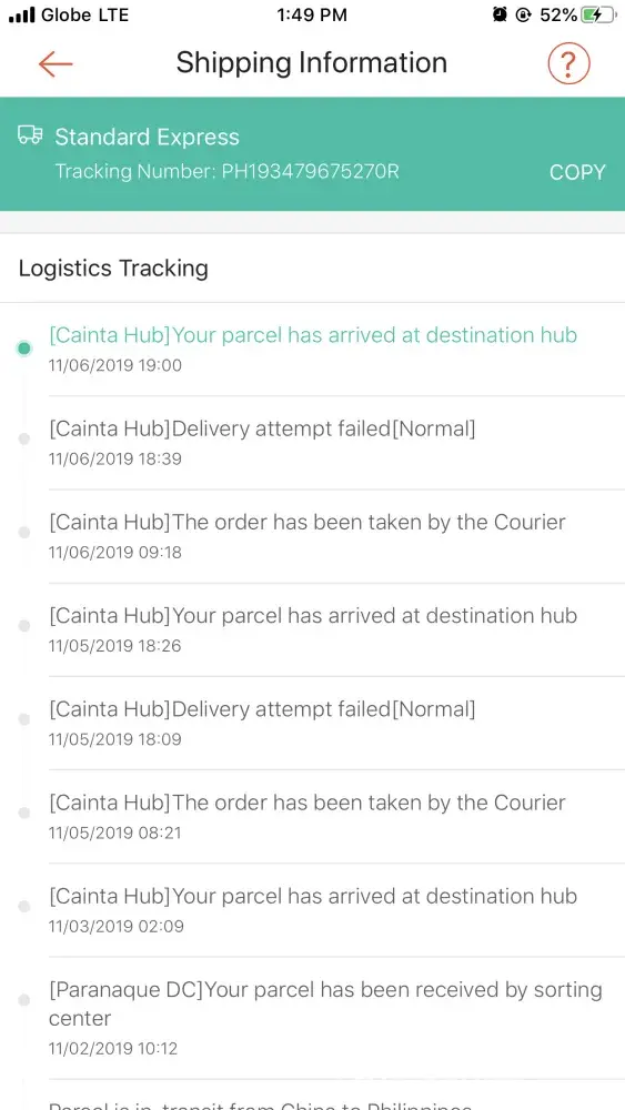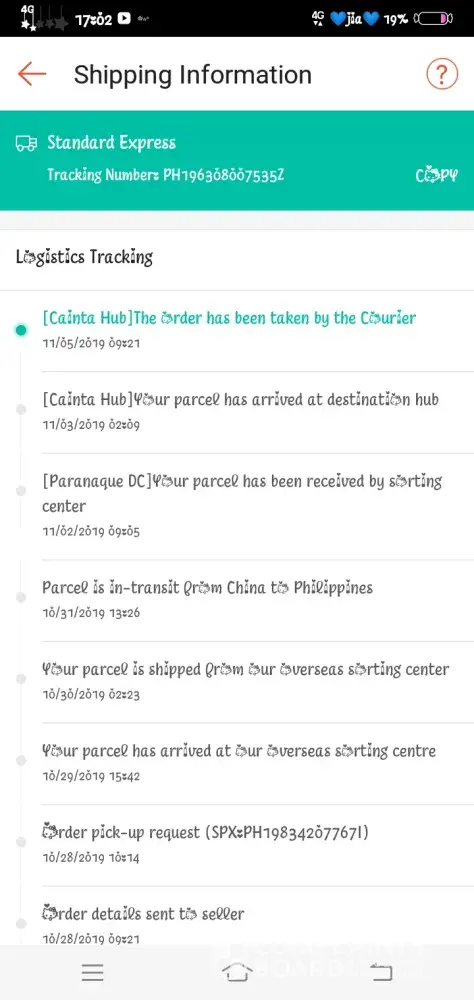 I purchase few items from Shopee Malaysia, after purchasing showing that the item was picked up on 06-11-2019 [pos laju Bandar Dato Onn].