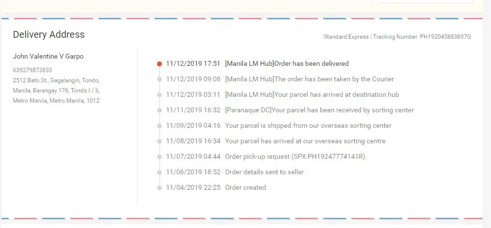 I ordered last oct 29, 2019 and made payment the following day oct 30, 2019.