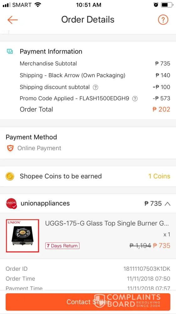 I tried ordering the same item from different sellers and all of them failed. One of them did not even bother sending the order and another one sent a wrong item. Also, sellers does not respond to my chat messages and the worse part is the support of shopee doesn't care. Don't bother using this platform. Its a waste of time. All the orders were paid using a credit card.