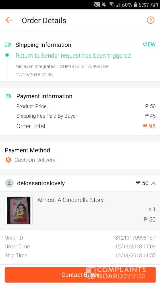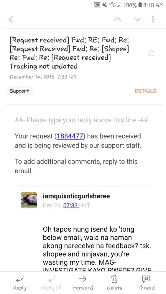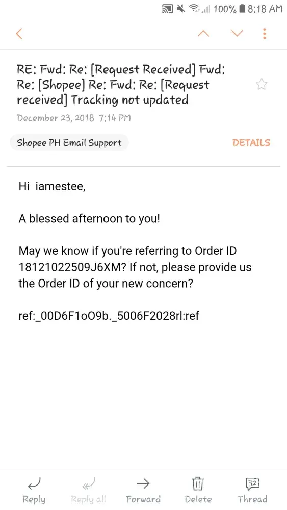 Dec 19 2018 5:03 pm. tumtwag c rider sken at ngttx. Nksilent phone ko. Pero 5:13 pm. Tumtwag ako sknya. Umwi ppa nga ko galing trbho. kc walking dstance lng nmn smen work ko. Pg uwi ko ng bhay wala na ko nadtnan na dlvery. Knulit ko ng knulit twagan ung rider hnggng pg sagot nsa oliVeros na dw sya. Sabi ko "kuya baka pwdw nmn bumalik ka kasi malapit ka pa naman dto. ang tgal ko na kasi inaantay yang dlvery na yan almost 20 weeks na" sagot nya saken hnd na dw sya mkkblik kc pbaesa nova na dw sya sab ko nmn tamang tama my daan yan dto samen pplbas ng baesa. Hnd n dw sya mkkblik. Pngbgyan ko. Tpos bngay ko pa number ko na kuya bukas alam ko my ddting pkong dlver. Bka pwdw mo na yan isabay. Sabi hhnappin nya dw mgddlver sken pra pgisahin nlng item ko. Dec 20 2018 ngaantay ako ng dlver dko na nga snslent phone ko. Kht nrrnig ng boss ko. Walang dumating na dlvery. n shoppee n ggmtin ko dpat ngyong pasko kasi dmit un. Hnggng sa nkipgchat nako sa seller. Sabi pablik na dw ng rizal ung inorder ko. Na wala akong kaalam alam na hnd ko na pala marrcieved ung item na mtgal ko ng inaantay. Panu po kya un dsddo pa nmn ako makuuha ko na ung mga inorder ko kc ngtiis akong d bmli ng bgongn dmit sa mall kc nga expected ko my mrrecieved ako galing sa shoppee pero wala na pala. thankyou. sana po mgwan ng actions