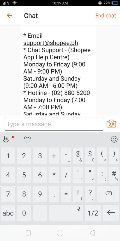 November 18 morning, Sunday, I keep calling Shopee but it's just a voice message informing of their supports availability. It says Sat & Sun, from 9am-6pm, but after the recorded message it's just a no tone then cut-off.