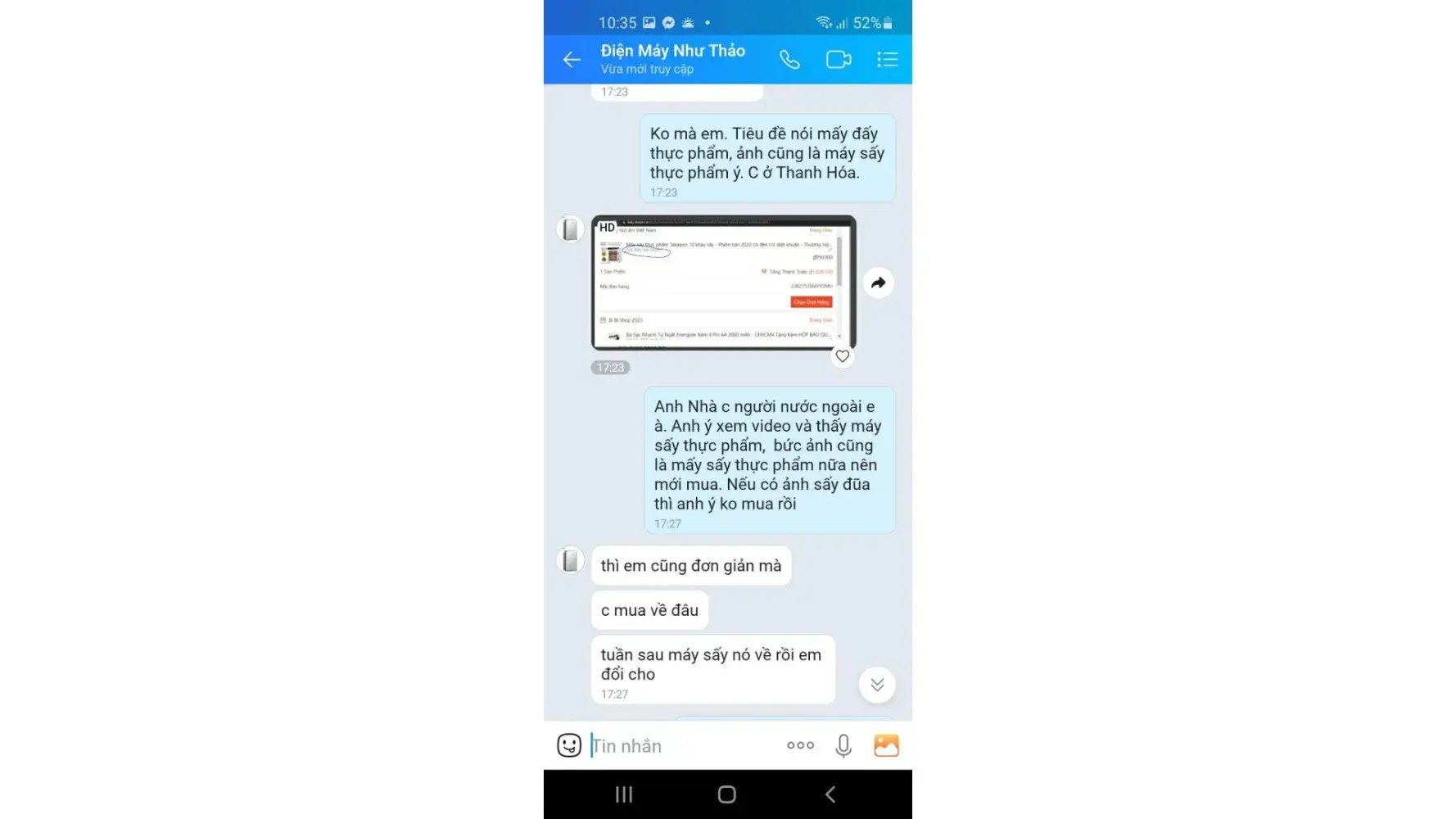 When I originally saw the advert the advert showed a picture of a dehydrator, videos of a dehydrator and a title in bold letters stating that it was a dehydrator. So when i placed my order there was only a dehydrator listed in the photos, video and title, there was no option to select a different product nor any pictures relating to the wrong product i received. Once the order was placed and I agreed to purchase I received the confirmation (See attached picture 1) Please notice on this picture that there is no option to choose between products! I was absent for delivery so my wife took the package in. On returning I noticed that the item was very small and once I opened it I realised I had been sent the wrong item. My wife is Vietnamese so she rang the shop immediately and spoke to a lady on the phone (I have phone records showing the calls took place). The woman on the phone was very nice and said that they would send out the correct item the following week and we could simply swap it with the delivery driver. That was on friday, so on monday we rang for an update and the lady said not to worry, it would be delivered this week. On wednesday we rang again and again the lady said not to worry it was on its way. On friday afternoon the item had still not arrived so we rang again, this time the woman was very rude and stated that it was our fault and that she isn't sending anything and she never said she was sending anything! (I have this information on text messages attached for you). The conversation broke down at this point, the lady said that we chose the wrong item, so I checked. The advert had been changed (see picture 2 and compare with picture 1. Picture two now shows a different picture and there is now the option of different variations), there was now an extra picture and a drop down menu for two items! Clearly you can see that after i placed the order for a dehydrator the seller accepted the money and then added variations to the advert! A classic scam! Eventually after lots of correspondence the lady agreed on a refund at our expense, I agreed this as I wanted to get this over with. So she told us to send the item back for COD. So we did this at our expense, after a week we checked with the post office and they confirmed that the item had been refused. I contacted the shop and the lady said I was lying and that her warehouse worker had taken money and given it to the driver. I explained this can not be true as I have the package in my hands. She refused this (despite being sent photos)! (The records of this are all on Shopee Chat. She then told me after lots of conversation that her warehouse worker had left the company. Then the warehouse worker was sick. Eventually things got heated and I informed them that I will call the police. At this point they blocked me on Shopee.