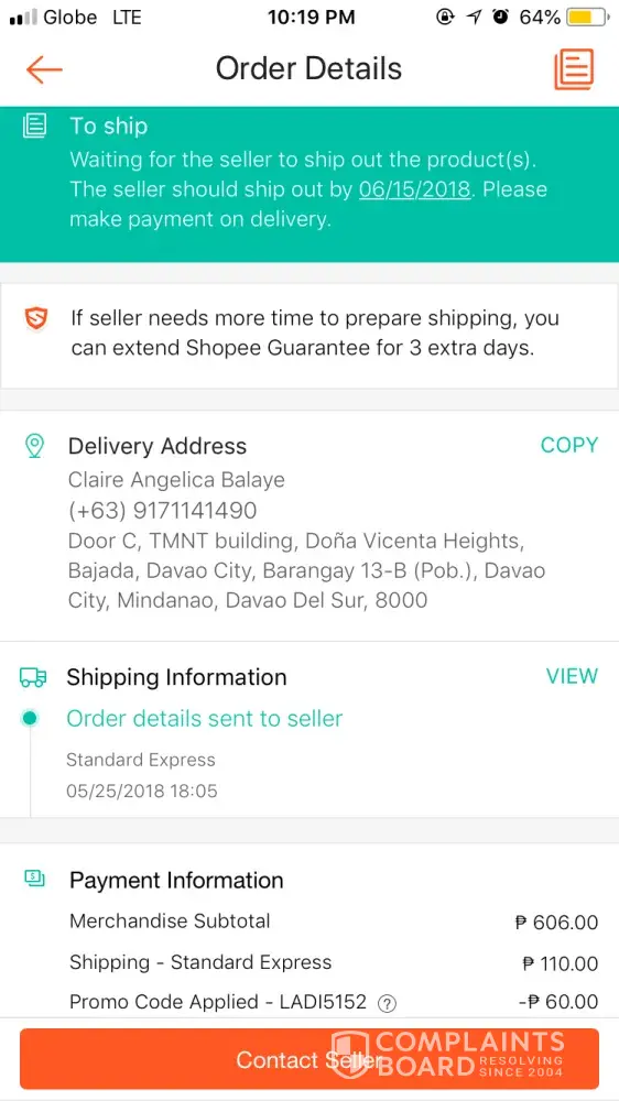 I placed an order with the seller: wonder_shopping.ph on July 10. My expected date that the order will be sent out is on 07/30. The timeframe is already extremely long, but I understand due to different sellers locations and the differences in company logistics. I also understand that the shipping system is terrible in the Philippines. Then I saw this status from shoppe: