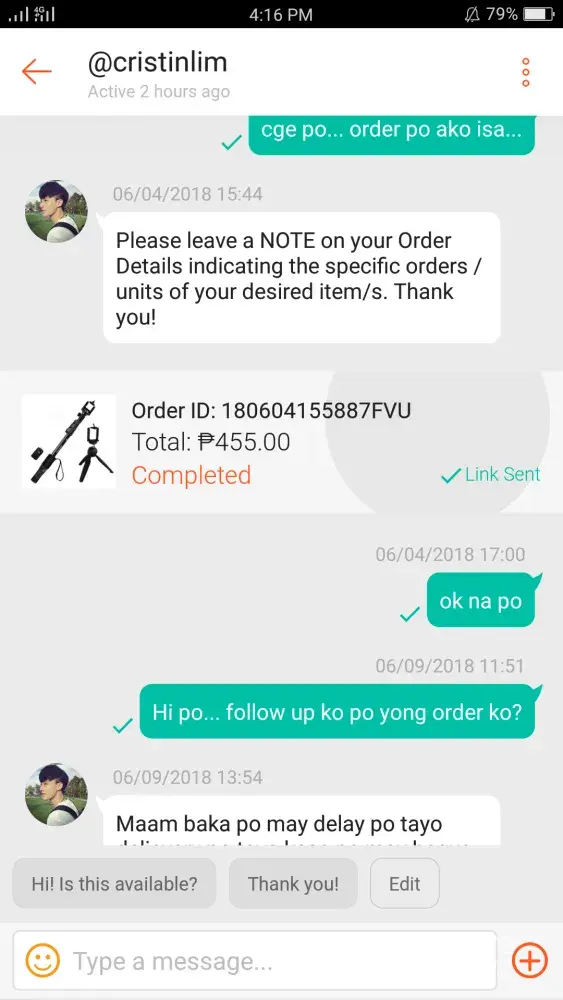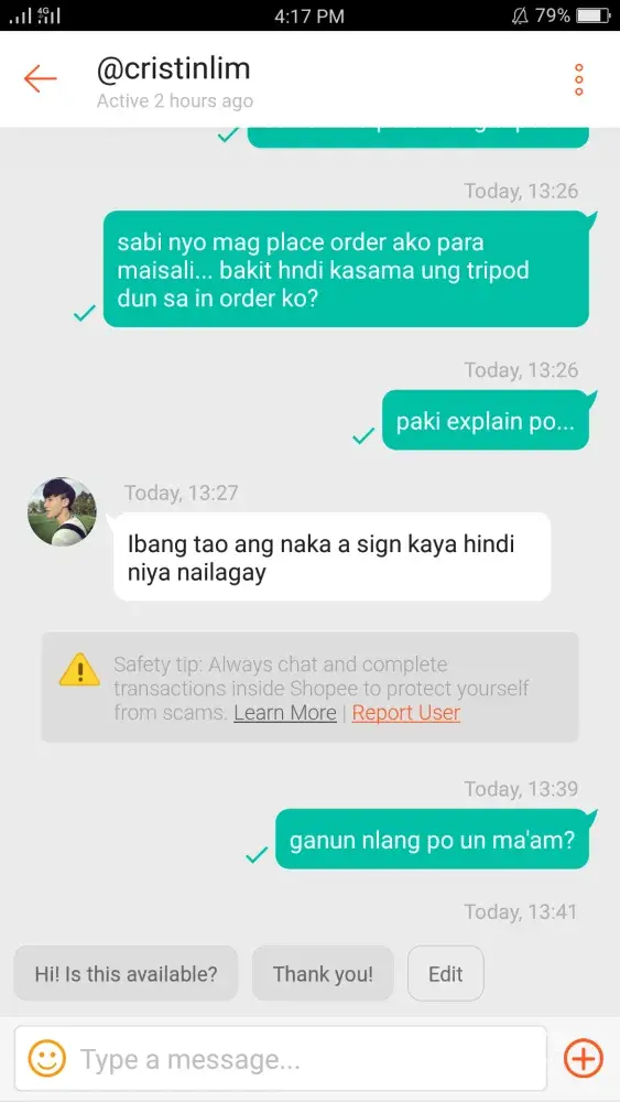 This is our entire conversation with the seller, trailblazer.ph, at shopee chat room: